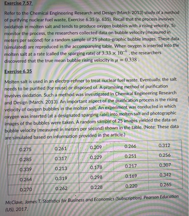 Solved Exercise 7 57 Refer To The Chemical Engineering Chegg Com